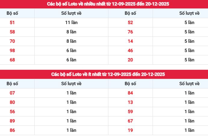 👉 Nhóm 51 – 58 – 70 là những con số nóng dài hạn, duy trì tần suất cao xuyên suốt nhiều kỳ. Riêng 51 đang dẫn đầu, đóng vai trò mốc tham chiếu quan trọng khi sàng lọc số cho kỳ quay 20/12.